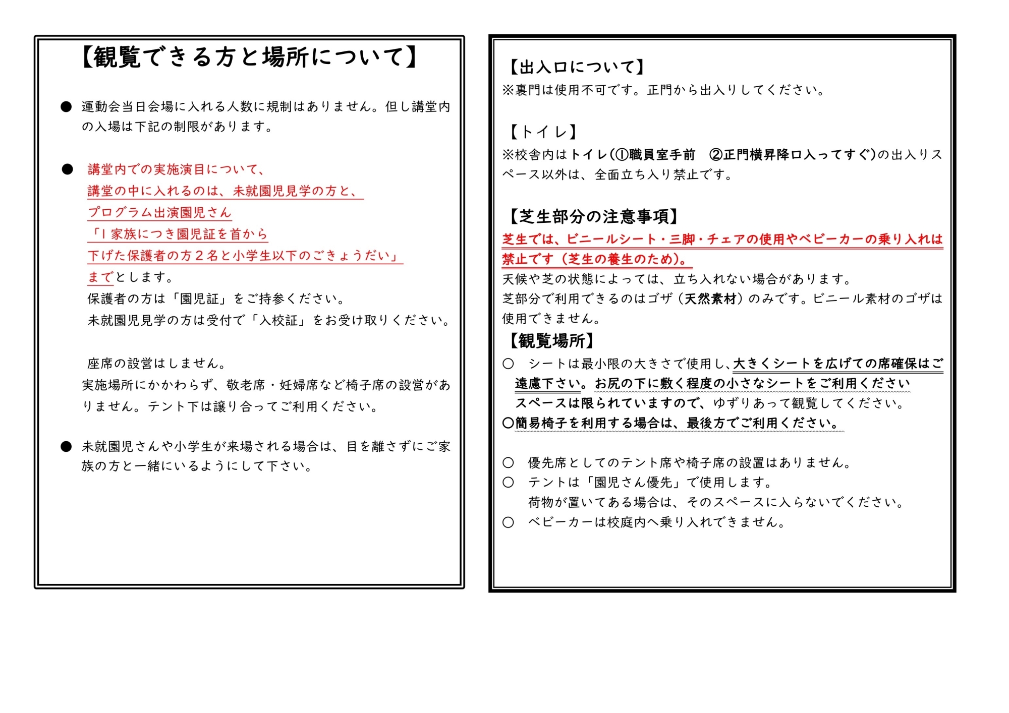 ・組体操が講堂で実施される場合、見学証をお持ちでない方は講堂内に入場できません。