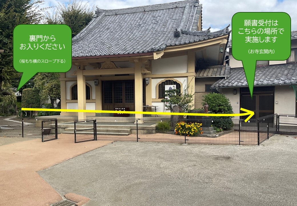 受付場所はご本堂右横のお寺玄関です